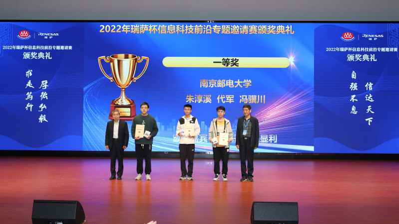 3月11日,由全國大學生電子設計競賽組織委員會主辦,南京郵電大學、南通市崇川區科技鎮長團承辦,瑞薩電子(中國)協辦的2022年全國大學生電子設計競賽瑞薩杯信息科技前沿專題邀請賽頒獎典禮在我校仙林校區舉行。