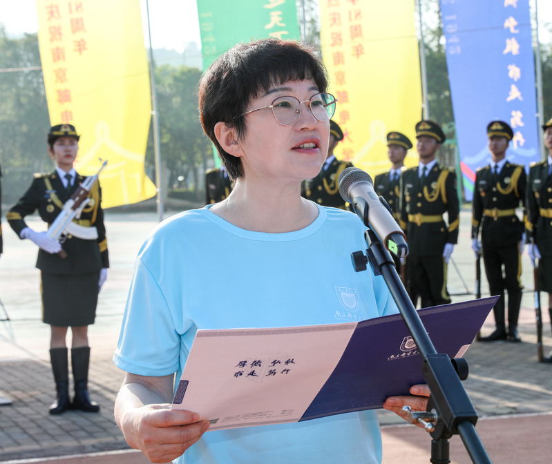 葉美蘭校長在國旗下的講話中回顧了南郵因郵電而生,隨通信而長,由信息而強的八十一載辦學歷程。抗日烽火中,南郵人戰火生根,鑄就“忠貞不渝、使命必達”的戰郵精神;共和國初創時,南郵人艱苦創業,肩負系統培養高層次人才、專門開展科學研究的雙重使命;改革開放后,南郵人務實進取,為國家富強、民族復興、人民幸福持續貢獻著南郵力量。葉校長指出,南郵的成長始終與黨和國家同向同行,八十一年來,學校為國家培養的26萬余名優秀人才遍布祖國各地,此時此刻,全體南郵人在五湖四海、天南地北共同慶祝母校81周年華誕。她希望,新一代的南郵人通過學習和了解南郵紅色校史,賡續戰郵精神,弘揚南郵文化,肩負起新時代的使命擔當,不負時代重托,不負青春韶華,立志做有理想、敢擔當、能吃苦、肯奮斗的新時代好青年,為全面建設社會主義現代化國家、全面推進中華民族偉大復興而團結奮斗。