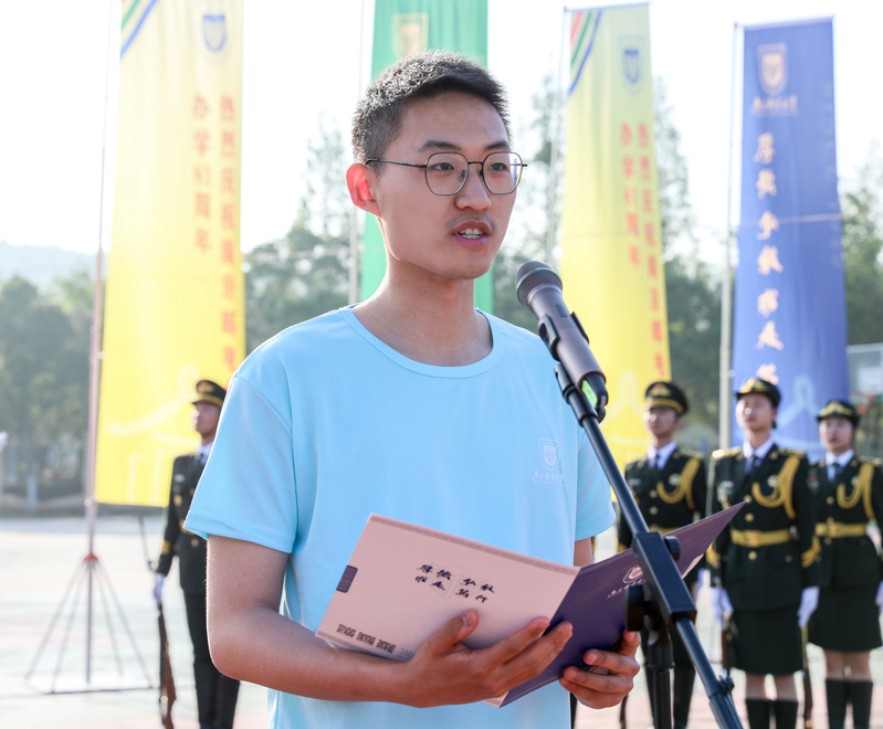 志愿在心,奉獻在行。在81周年校慶之際,校領導為南郵青年志愿者授“青柚”志愿者服務總隊標識旗幟,勉勵志愿者們接力傳承志愿服務精神,淬煉青春本色,第25屆研究生支教團成員作為志愿者代表接旗。“校之所重,我之所為,國之所需,我之所向。”志愿者代表領誓,全體師生齊頌誓詞,錚錚誓言鏗鏘有力,振奮人心,展現了南郵青年理想遠大、立志圖強的昂揚風貌。