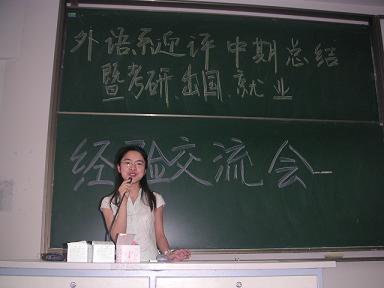 5月23日下午,在教2-311教室,外語系舉行了“迎評中期總結暨考研、出國、就業經驗交流會”。外語系全體非畢業班的學生參加了會議。