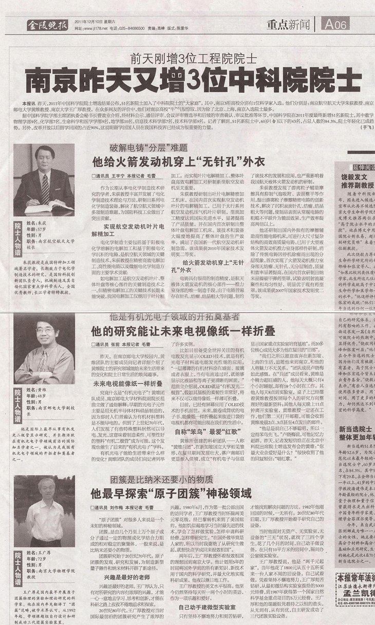 【金陵晚報(bào)】南京昨天又增3位中科院院士