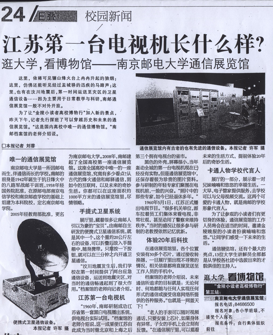【金陵晚報】逛大學(xué),看博物館——南京郵電大學(xué)通信展覽館