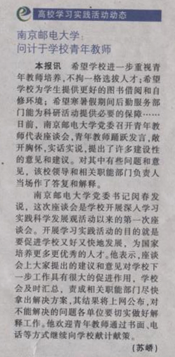 【江蘇教育報】南京郵電大學:問計于學校青年教師