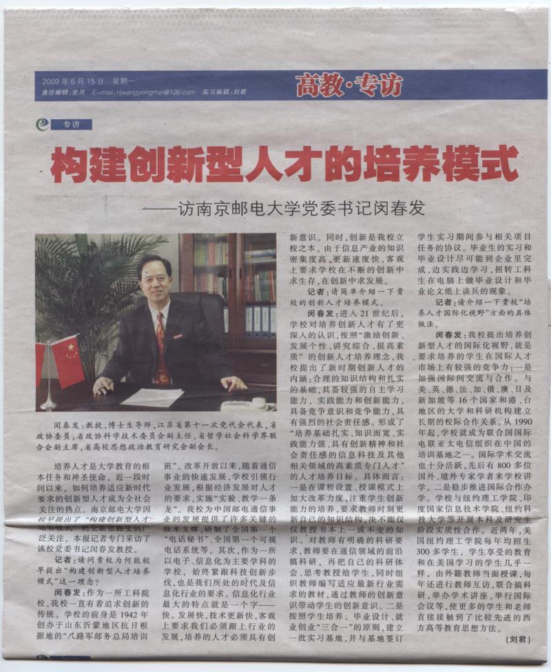 【江蘇教育報(bào)】構(gòu)建創(chuàng)新型人才的培養(yǎng)模式