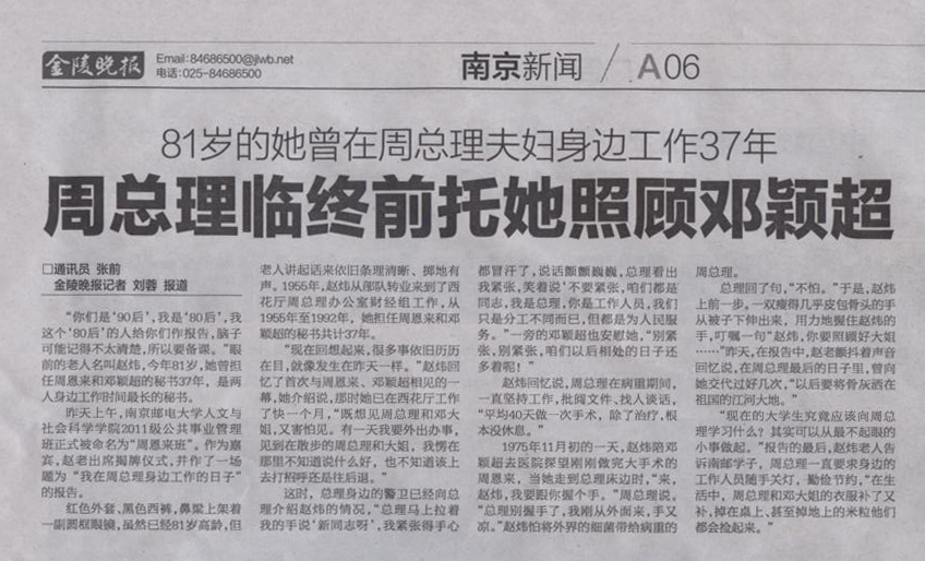 【金陵晚報】周恩來臨終前托她照顧鄧穎超
