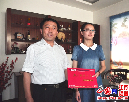 姜堰市的黃綺語成為今年南郵文科類錄取的第一名。她今年高考成績348分,被南郵經(jīng)濟(jì)與管理學(xué)院工商管理專業(yè)錄取。她接過王宗榮副校長一行送來的錄取通知書后,還向老師們咨詢了課程安排等方面的情況。黃綺語說,前幾天還上南郵貼吧逛了逛,上面都說南郵學(xué)習(xí)氣氛濃厚,強(qiáng)化班更是學(xué)霸超多。“我感到學(xué)習(xí)上有點(diǎn)壓力,正在看英語四級(jí)考試的書,”她告訴記者,“聽說大學(xué)里社團(tuán)很多,我想?yún)⒓庸嫔鐖F(tuán)。”