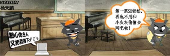電腦:“粗心的主人,又把我落下。” 灰太狼:“再也不用和小灰灰偷偷去網吧啦!” 電腦:“休息要防狼。”