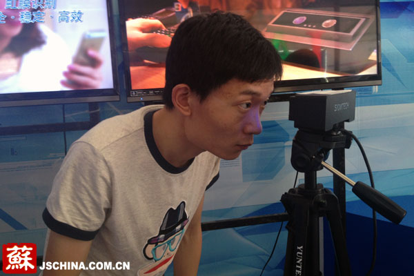 南京郵電大學(xué)王濤在演示“虹膜支付”。