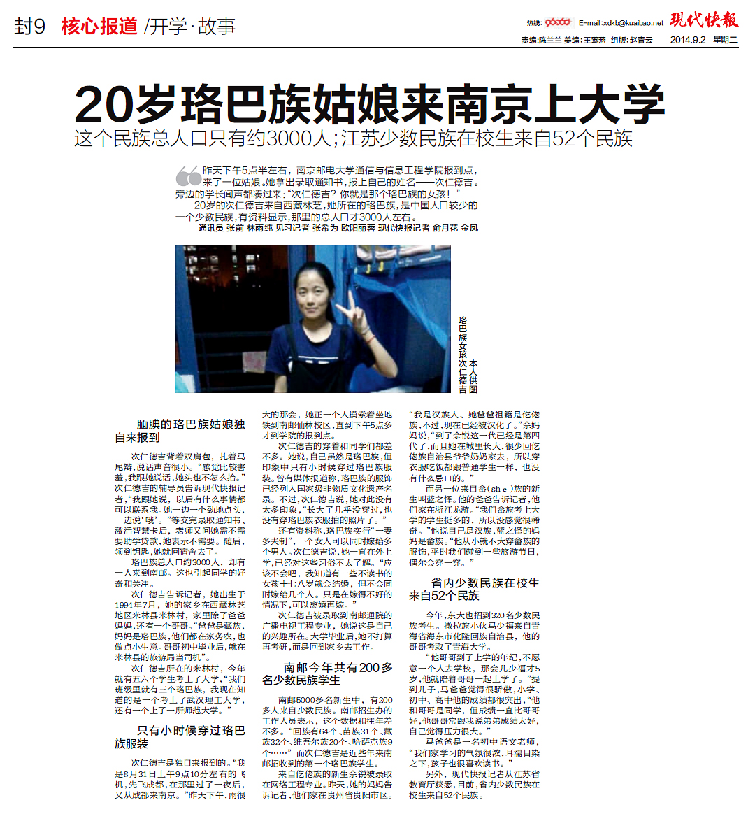 【現代快報】20歲珞巴族姑娘來南京上大學