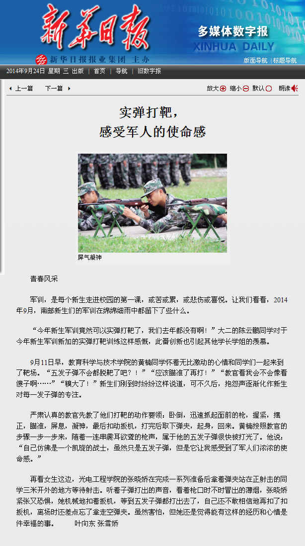 【新華日報】實彈打靶,感受軍人的使命感