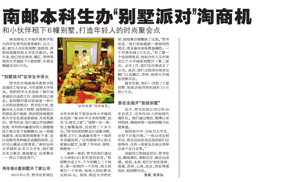 【揚子晚報】南郵本科生辦“別墅派對”淘商機