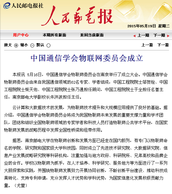【人民郵電報】中國通信學會物聯網委員會成立