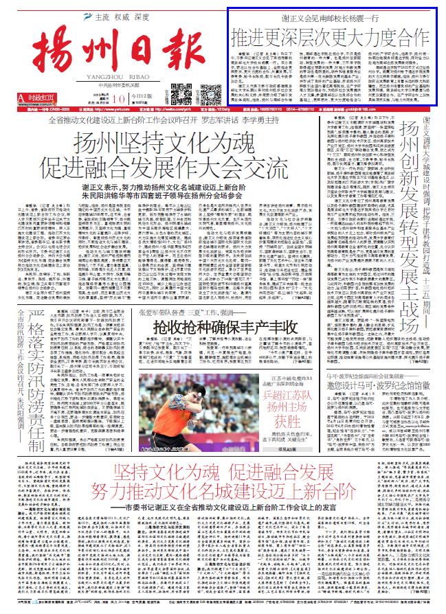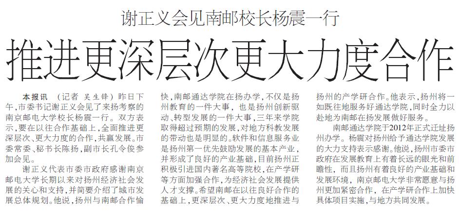【揚(yáng)州日?qǐng)?bào)】謝正義會(huì)見南郵校長(zhǎng)楊震一行