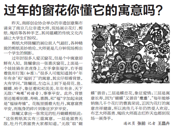 【南京晨報】過年的窗花你懂它的寓意嗎?