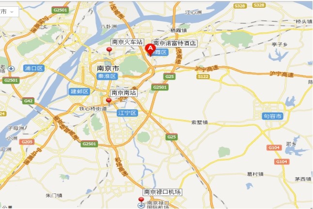 南京南站:乘坐地鐵3號線至大行宮站內轉2號線至仙鶴門站下車,出地鐵站轉乘165路公交車,經過3站,到蘇寧總部下車,步行170米到達酒店。