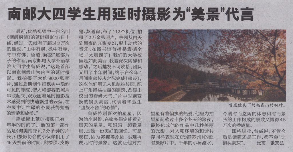 【揚子晚報】南郵大四學生用延時攝影為“美景”代言