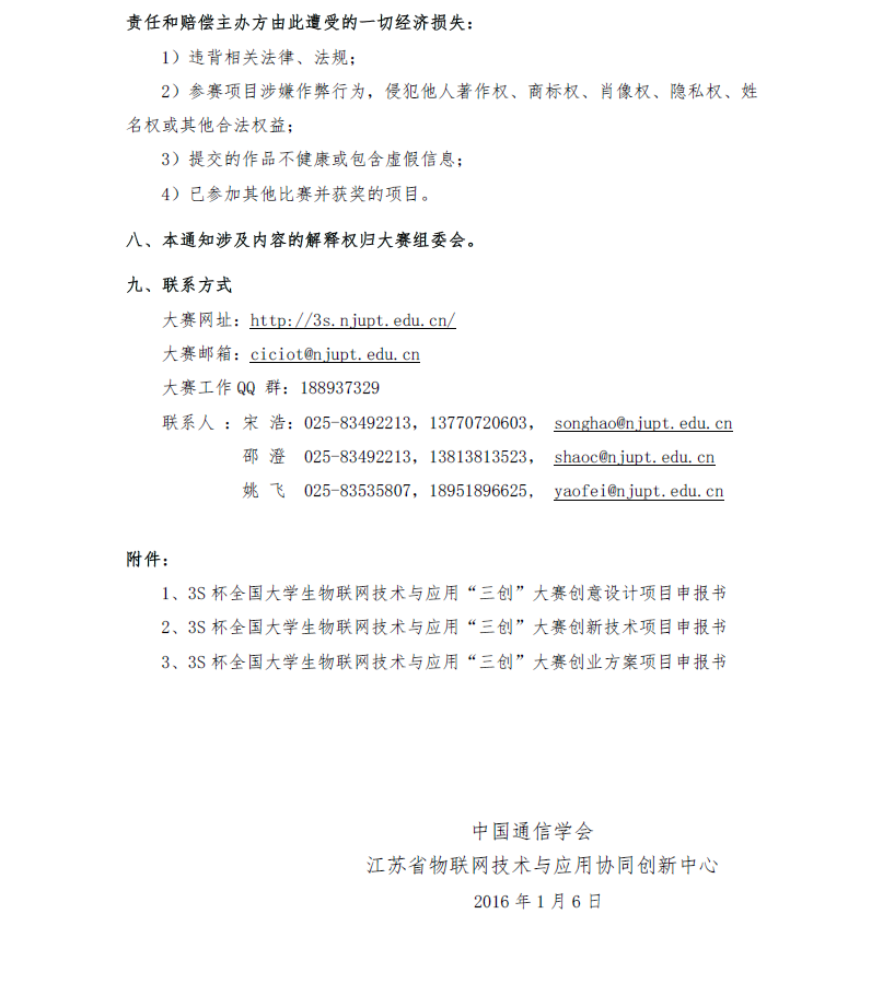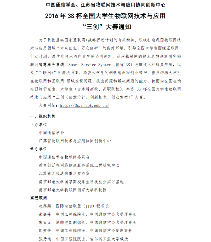 2016年3S杯全國大學生物聯網技術與應用“三創”大賽通知