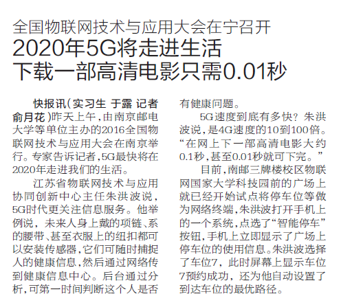 【現(xiàn)代快報(bào)】2020年5G將走進(jìn)生活