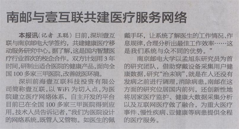 【南京日報】南郵與壹互聯共建醫療服務網絡