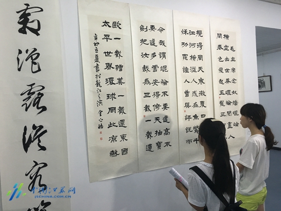 今天下午,為慶祝建黨95周年,南京郵電大學在該校藝術館舉辦名家書畫展。江蘇省文學藝術界聯合會主席章劍華,中國書法家協會顧問言恭達,南京藝術學院藝術研究所所長黃惇等40余位著名書畫家的60余幅作品展出。