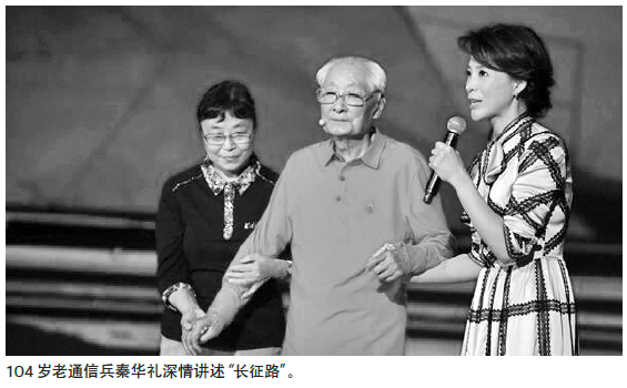 多位親歷長征、平均年齡逾百歲的老紅軍現場開講。94歲的梁天文、99歲的胡正先以及104歲的秦華禮。