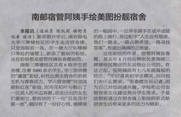 【南京日報】南郵宿管阿姨手繪美圖扮靚宿舍