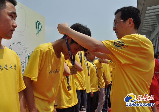 龍虎網(wǎng)訊 (記者 朱晶晶 通訊員 尤萱 攝影 尤萱)“砰”地一聲發(fā)令槍,由南郵教師和校友組成的五十余名“馬拉松精英跑”選手和首站百名“接力跑”師生沖出了起跑線。今天(4月16日)早晨七點,為慶祝學校辦學七十五周年的“校慶跑”活動在南京郵電大學三牌樓校區(qū)內舉行。
