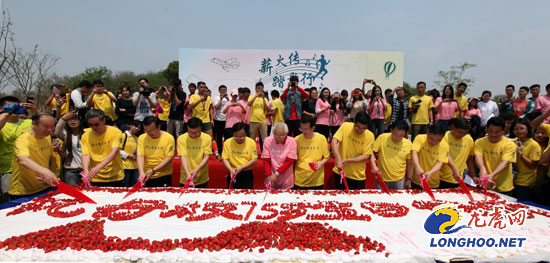 活動現(xiàn)場還制作了由校友捐贈的寬1.9米長4.2米厚75毫米的巨型生日蛋糕,寓意南郵從1942年誕生至今,已經(jīng)走過75周年的光榮歷程。蛋糕上鮮紅的草莓擺出了“祝母校75歲生日快樂”的字樣。秦老書記和全體校領導為參加當天活動的師生、校友切分校慶生日蛋糕。