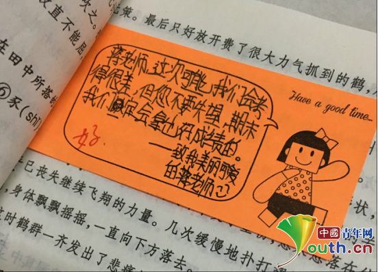 學生給南京郵電大學研究生支教團團長蔣麗婷的留言。蔣麗婷 供圖