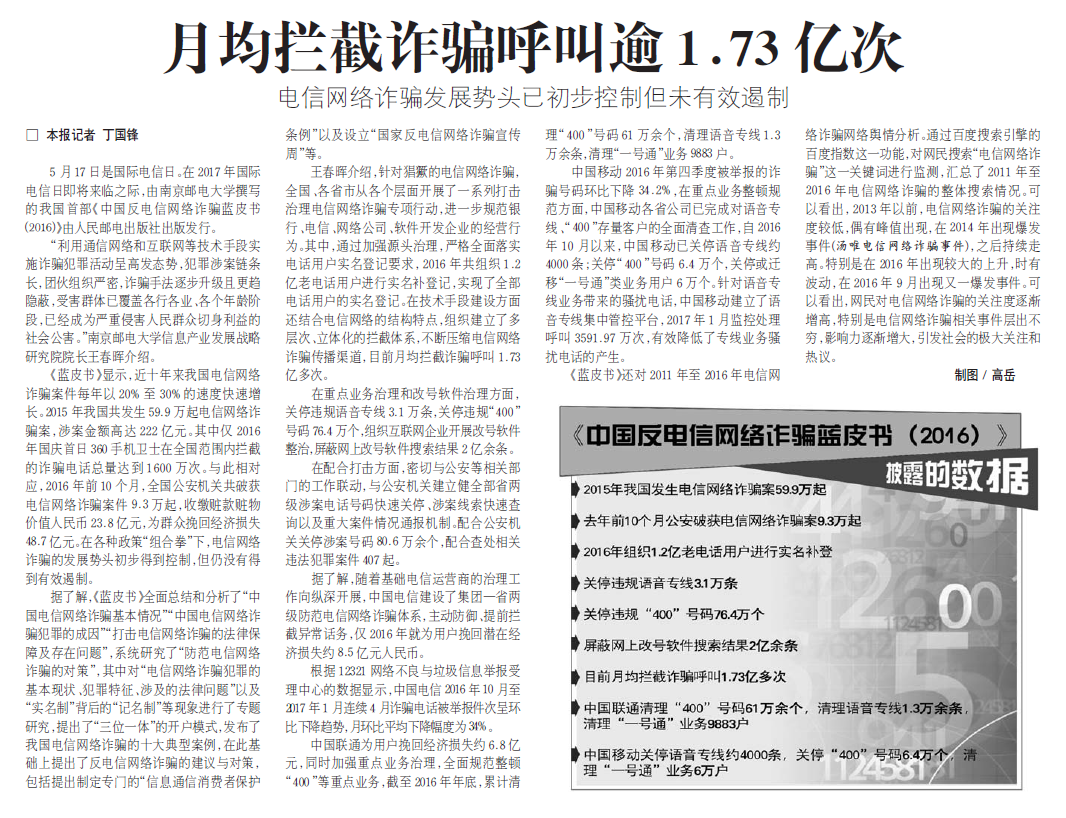 【法制日報】月均攔截詐騙呼叫逾1.73億次