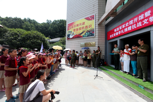 今年是紀念全民族抗戰(zhàn)爆發(fā)80周年。為支持開展國防教育,弘揚愛國熱情,7月18日上午,在南京國防園“中國人民解放軍軍史館”開館儀式上,105歲老紅軍、南京郵電學(xué)院首任黨委書記兼院長秦華禮向南京國防園慷慨捐贈珍藏了七十多年的抗戰(zhàn)文物兩件,并為軍史館開館揭幕。