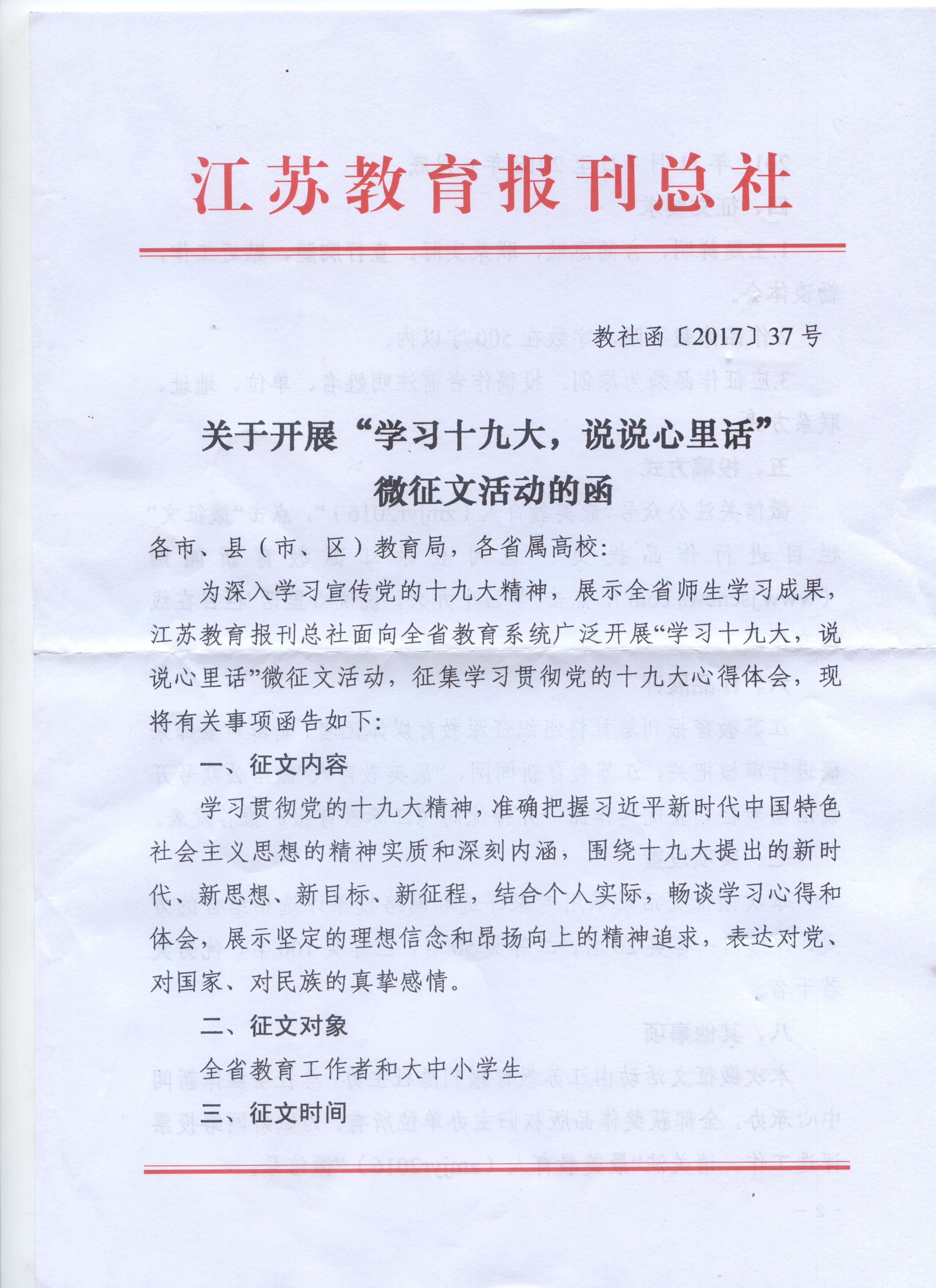 關(guān)于開展“學(xué)習(xí)十九大,說說心里話”微征文活動的通知