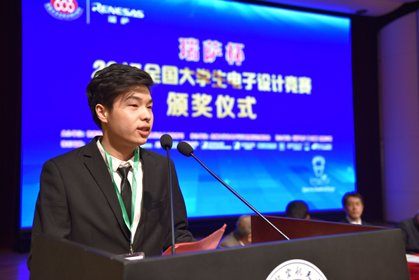 據悉,獲獎團隊主要成員、南京郵電大學電子與光學工程學院大四學生王博作為唯一的獲獎學生代表在頒獎儀式上發言。“我大一上學期加入校科協和創新實踐基地,成為了一名電子DIY愛好者。大二時,我結識了兩位給力的隊友,一同加入老師的自動控制科研小組,參與了有關飛行器、智能車、機器人等相關的科研項目。大三上學期,我們參與了多個科研項目,獲得2017年全國大學生智能互聯創新應用大賽國家一等獎及ARM創新大獎。”據介紹,南郵組建了三十余老師的電子設計與創新訓練指導團隊,緊跟信息技術最新發展,關注電子設計競賽領域的最新發展動態。“當我們看到了今年的賽題時,心中萬分高興,對于四軸飛行器,我們有準備,有項目經歷。”王博說,此次在肖建、蔡志匡老師指導下獲得最高獎,得益于學校較為成熟的培訓體系和選拔機制。