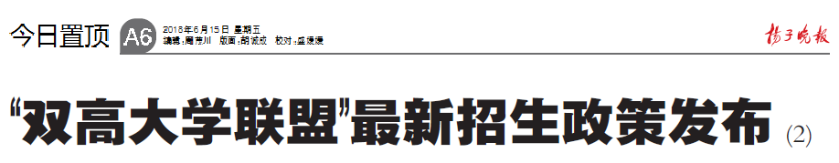 【揚子晚報】“雙高大學聯盟”最新招生政策發布
