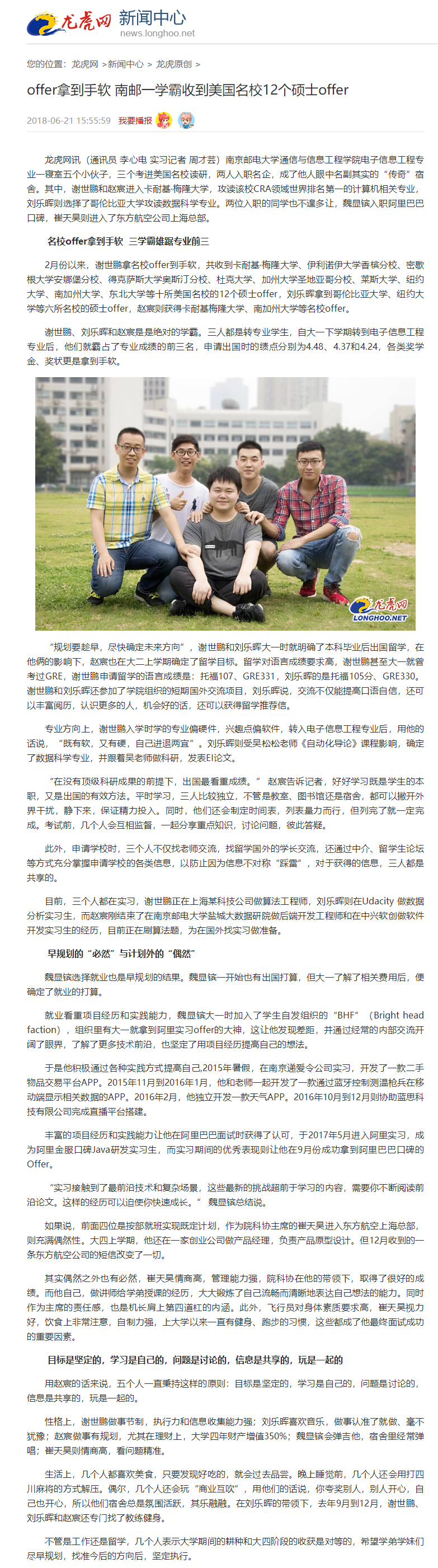【龍虎網(wǎng)】offer拿到手軟 南郵一學(xué)霸收到美國(guó)名校12個(gè)碩士offer