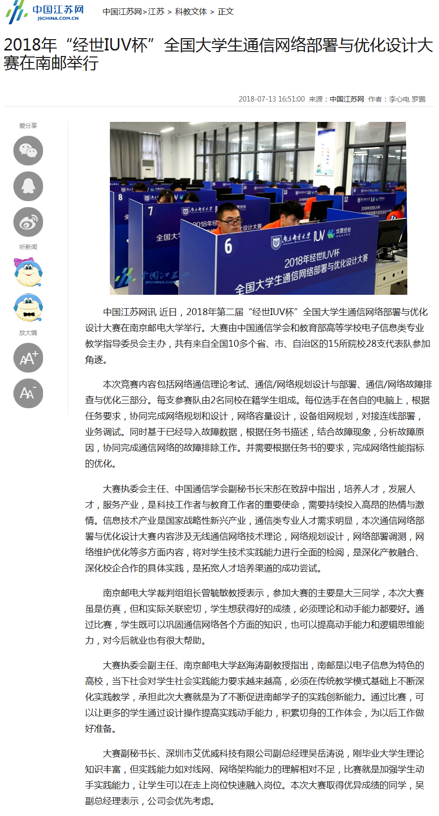 【中國江蘇網】2018年“經世IUV杯”全國大學生通信網絡部署與優化設計大賽在南郵舉行
