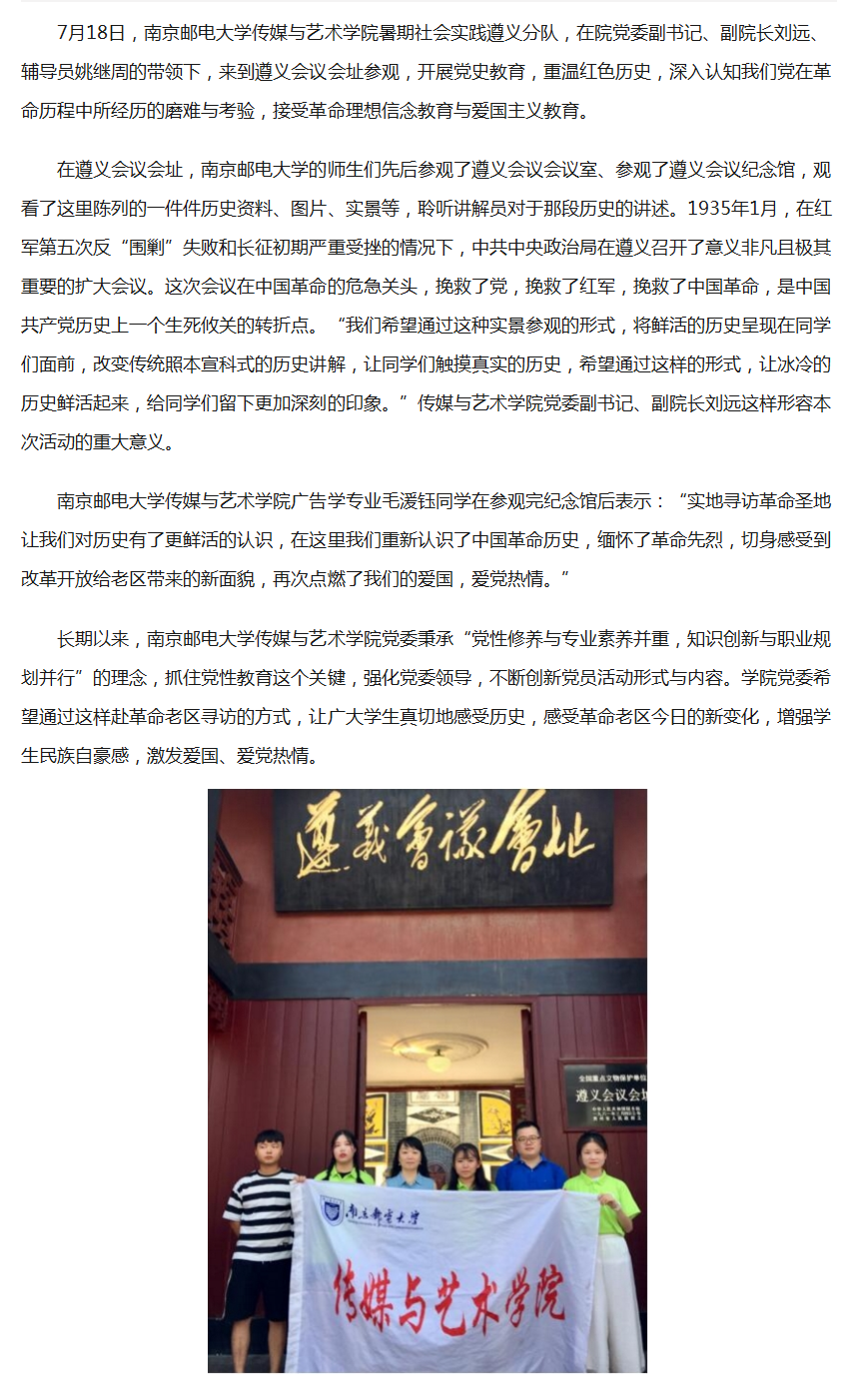 【東方網】南京郵電大學傳媒與藝術學院師生赴遵義革命老區開展黨史教育