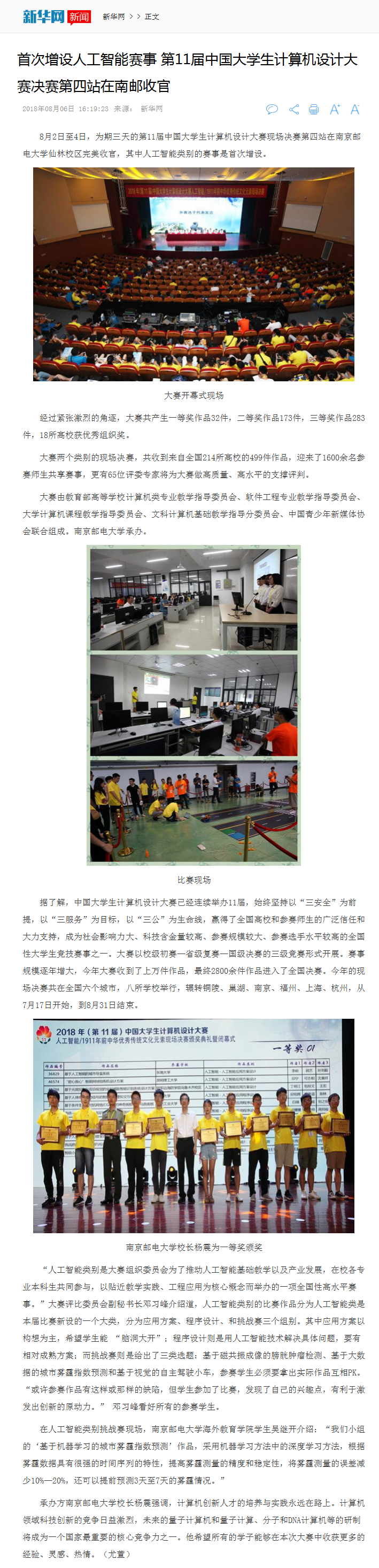 【新華網】首次增設人工智能賽事 第11屆中國大學生計算機設計大賽決賽第四站在南郵收官