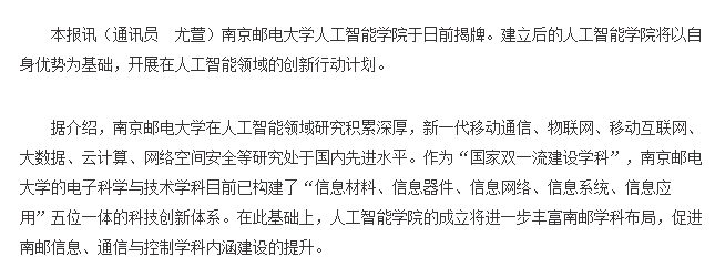 【江蘇教育報】南京郵電大學成立人工智能學院
