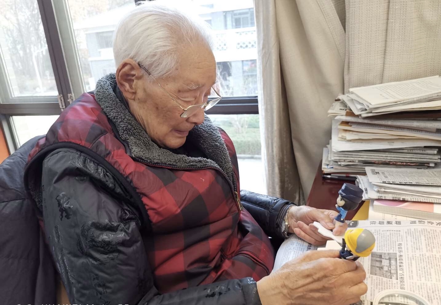 回憶往昔記憶力驚人的秦老,談及當下亦不輸后輩。他很關心國家大事,離休后仍然堅持每天讀書看報,眼睛看不清字以后,就讓子女每天讀給他聽,觀看《新聞聯播》等新聞節目,是他每天的“必修課”。交談中,“脫貧”、”三大攻堅戰“等當下時事熱詞不時從這位百歲老人口中說出。