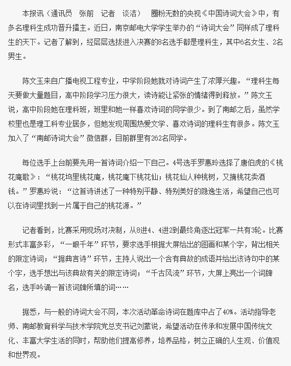 【南京日報】南郵學生舉辦“詩詞大會”