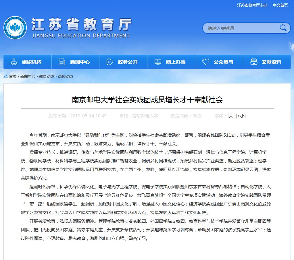 【江蘇教育】南京郵電大學社會實踐團成員增長才干奉獻社會
