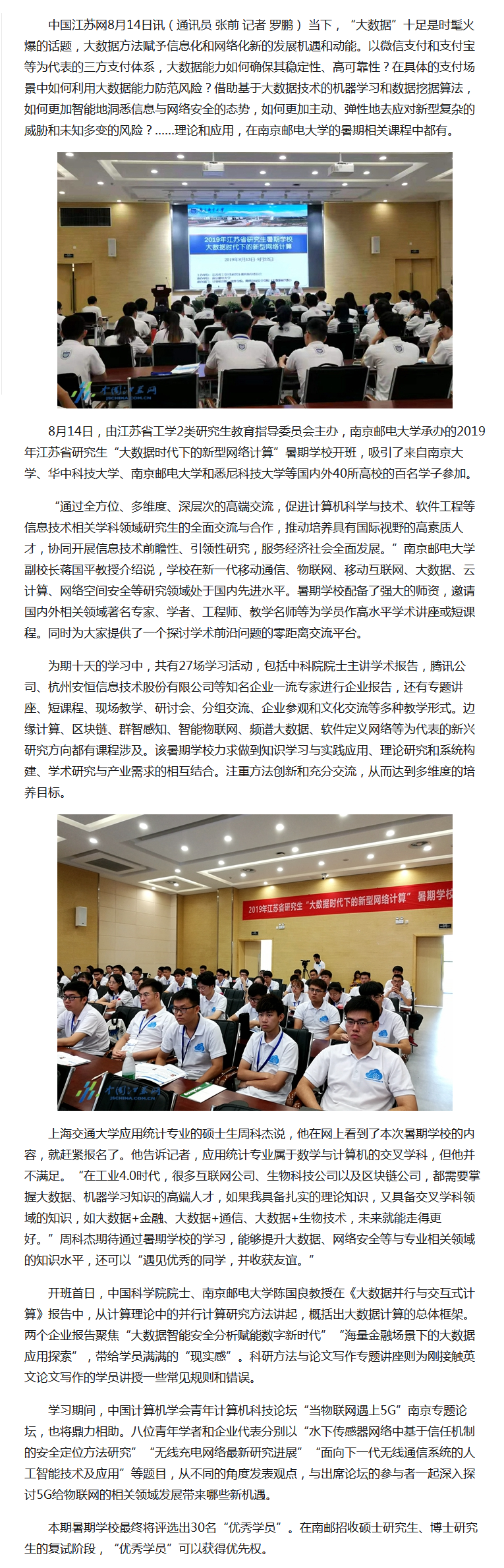 【中國江蘇網】南郵舉辦“新型網絡計算”暑期學校 中外百名學子共話大數據