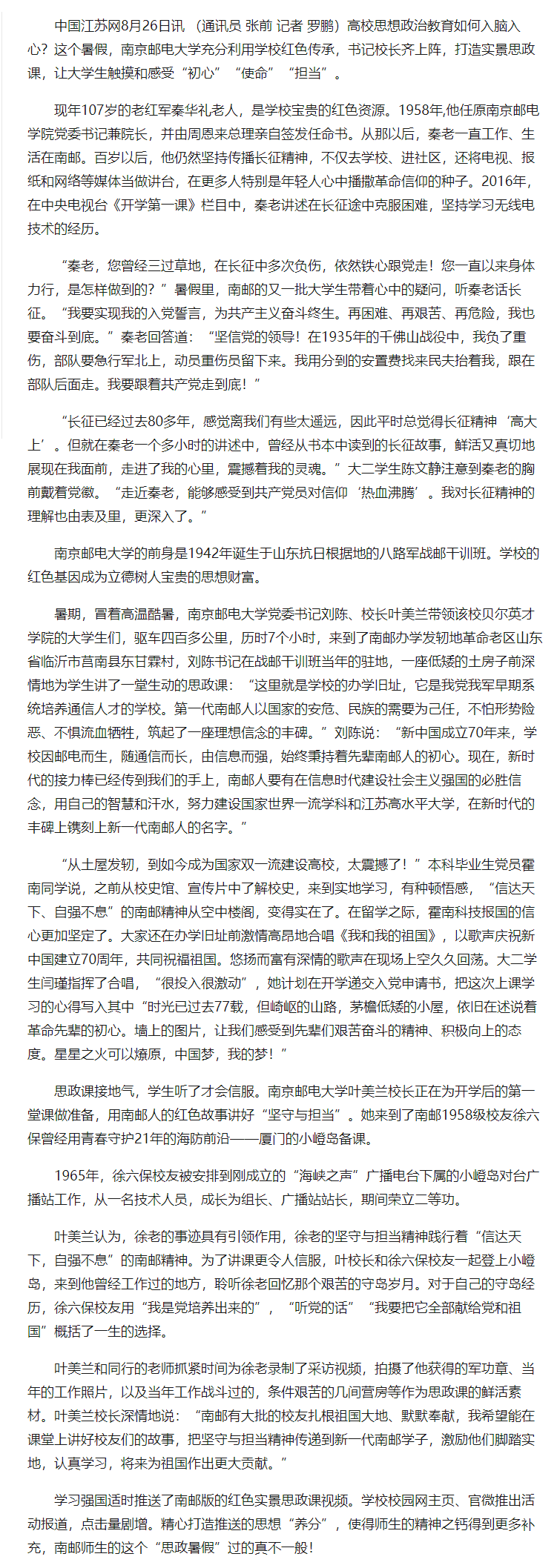【中國江蘇網】書記校長齊上陣 南郵版紅色實景思政課暑期燃爆師生