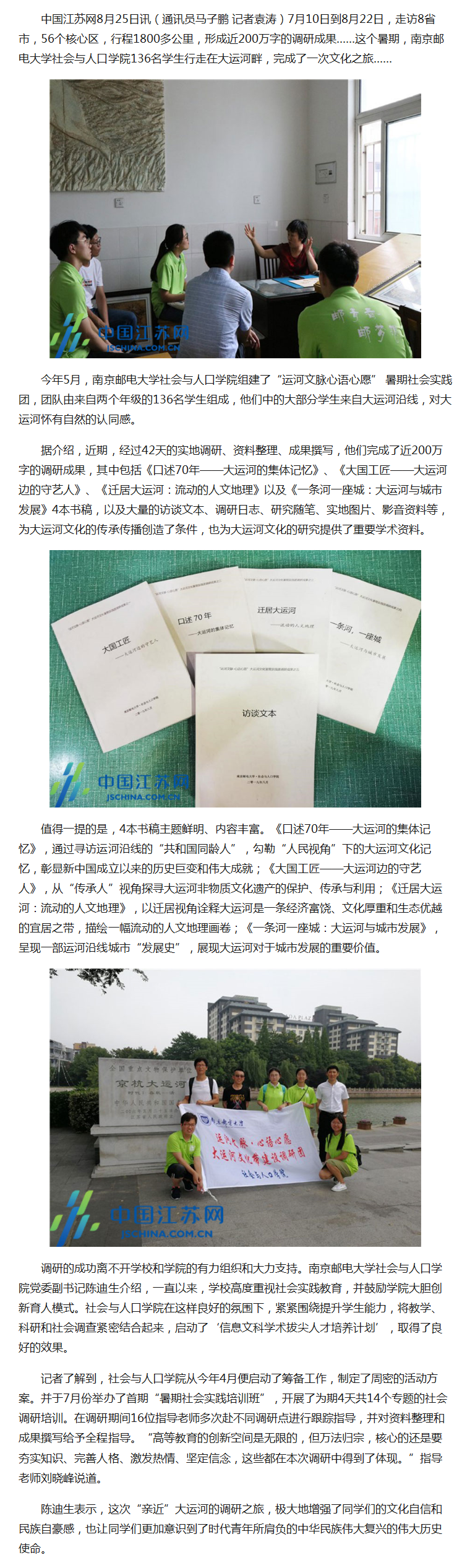 【中國江蘇網】行程1800公里走訪8省市 南郵學生完成200萬字運河文化調研