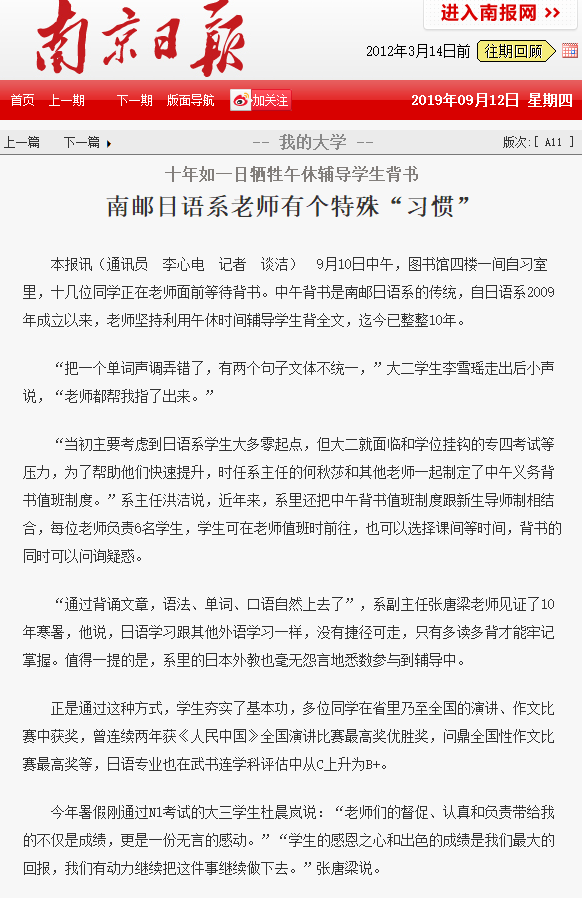 【南京日報】南郵日語系老師有個特殊“習慣”