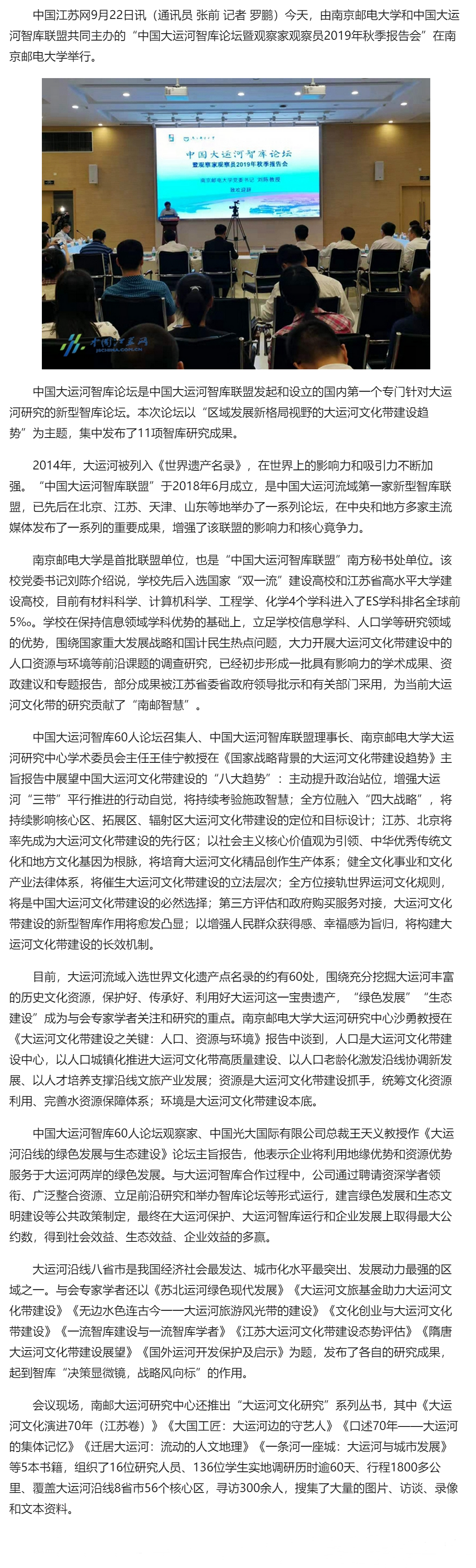 【中國江蘇網】中國大運河智庫論壇在南郵舉行 11項研究成果集中發布