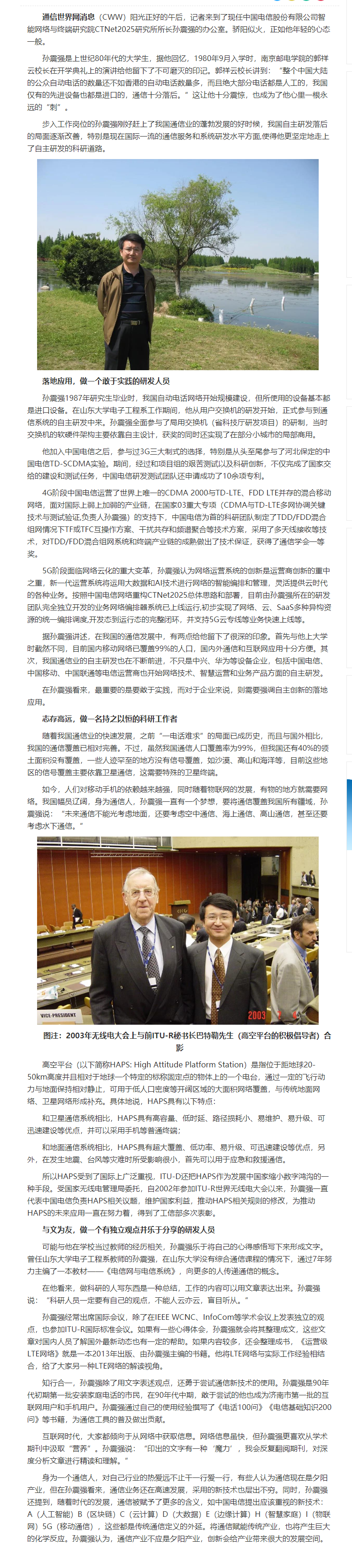【通信世界網】孫震強:堅持自主研發,努力實現通信的陸??杖采w