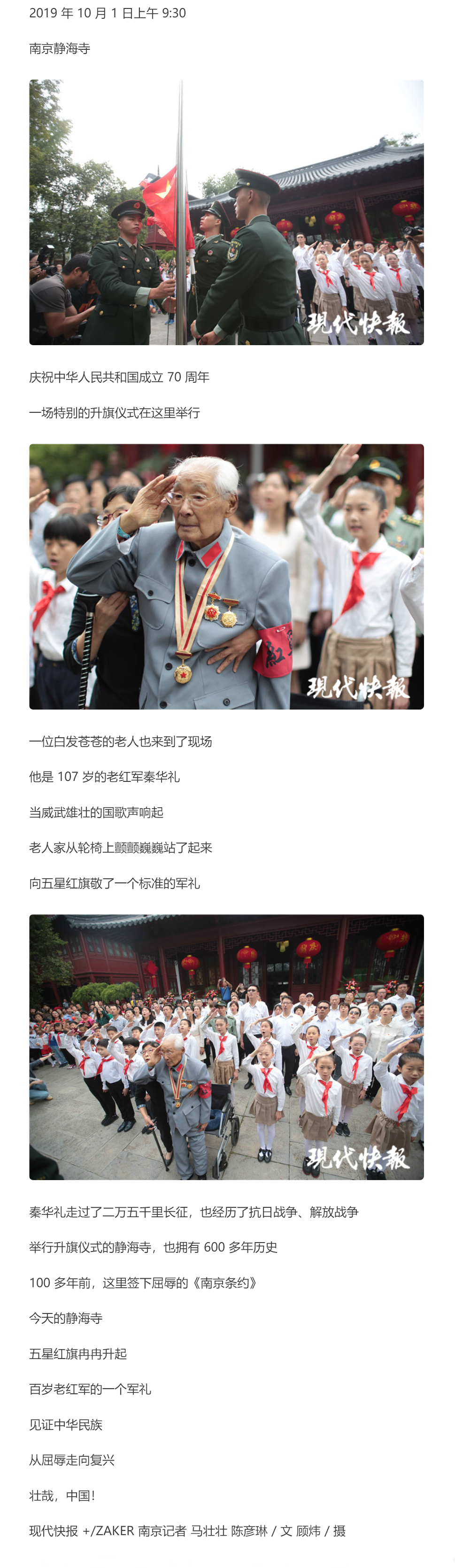 【現代快報全媒體】壯哉!南京靜海寺,107歲老紅軍向國旗燃情敬禮!