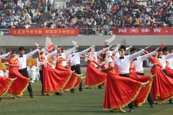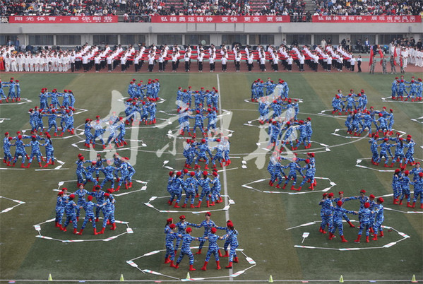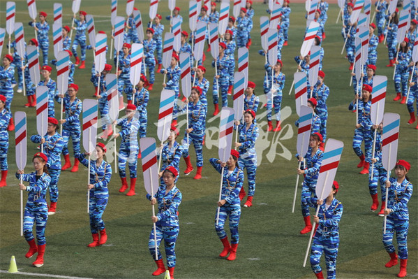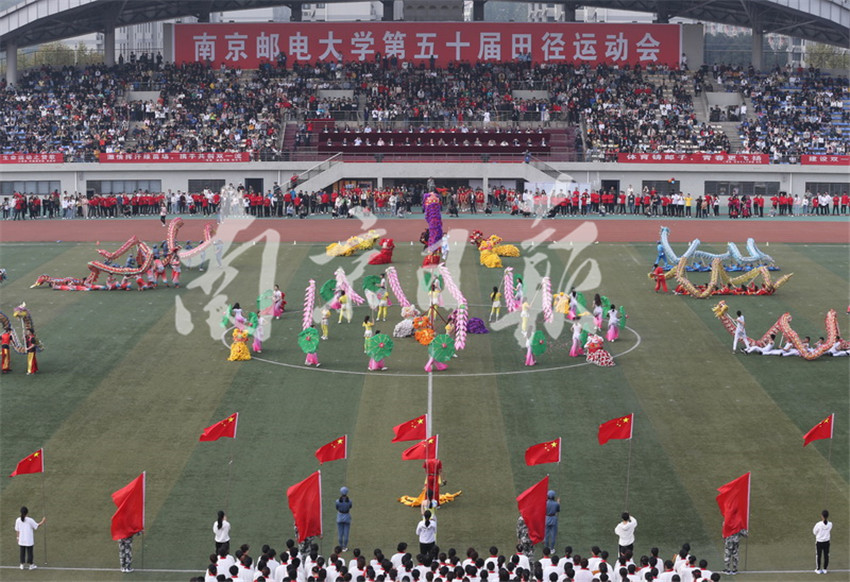 10月25日,南京郵電大學舉行第五十屆田徑運動會,來自各個院系的大學生們整齊亮相,配以不同的服飾輪番展示舞龍舞獅、啦啦操、團體操等節(jié)目,展示大學生青春風采,現(xiàn)場涌動濃濃的愛國情。本報通訊員 張前 本報記者 徐琦 攝